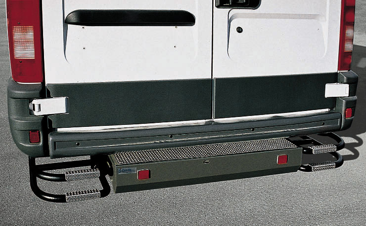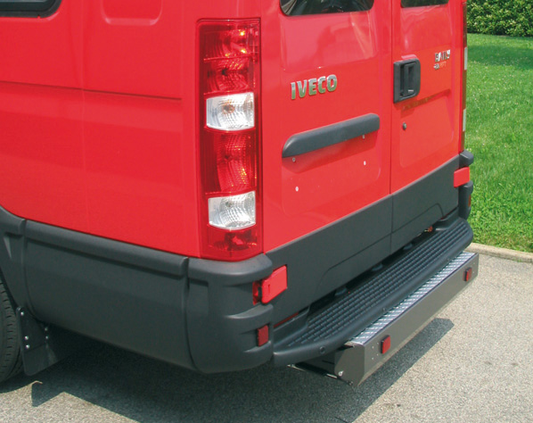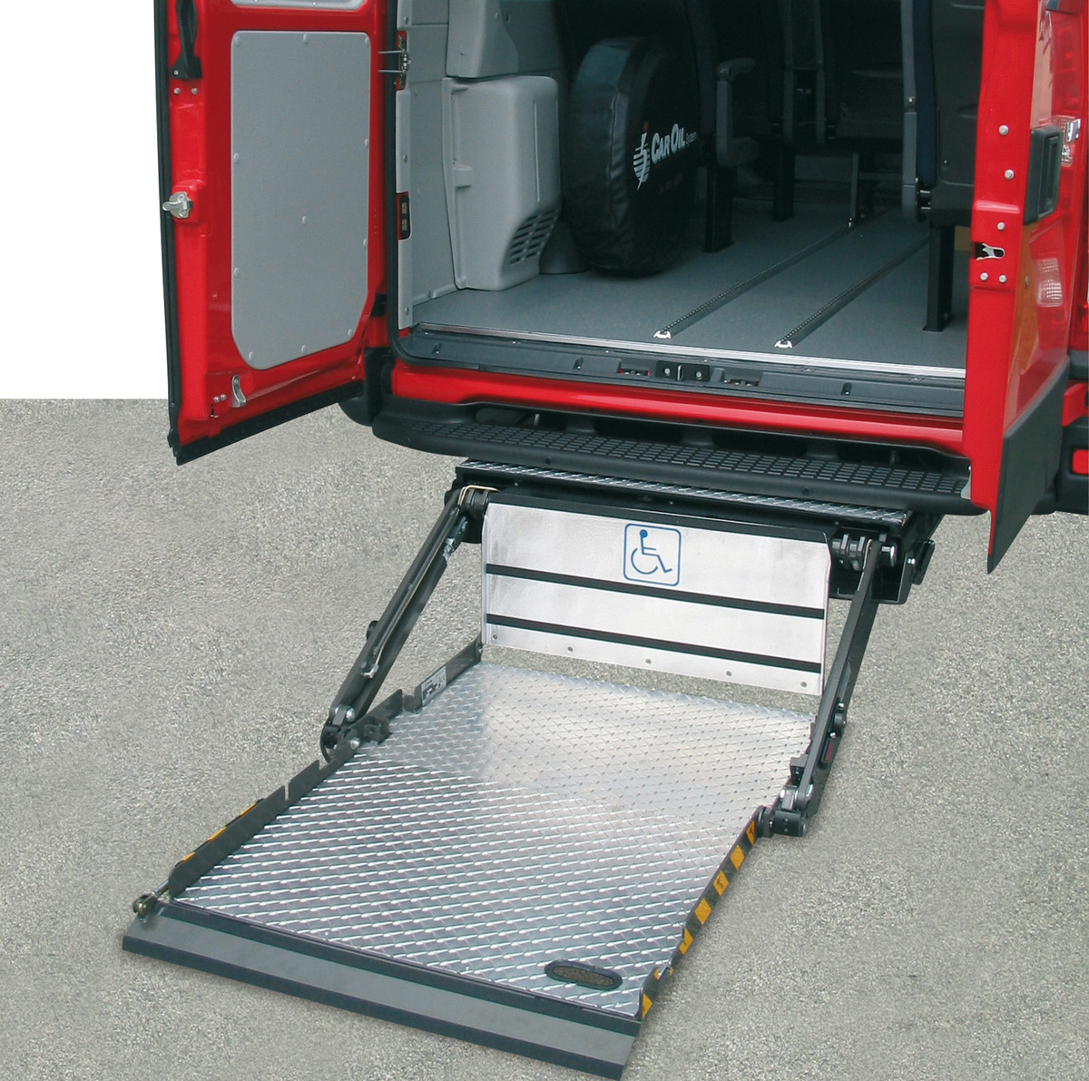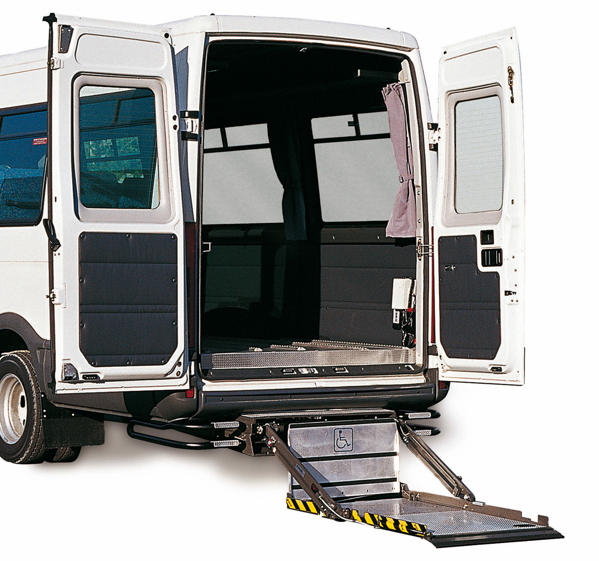 Sollevatore elettroidraulico semi-automatico retrattile a scomparsa sottotelaio. Posizionato posteriormente al veicolo, permette la massima versatilità relativa all’allestimento interno del veicolo. Cassetta di contenimento completamente chiusa con coperchio a funzionamento automatico.